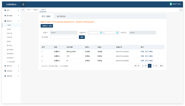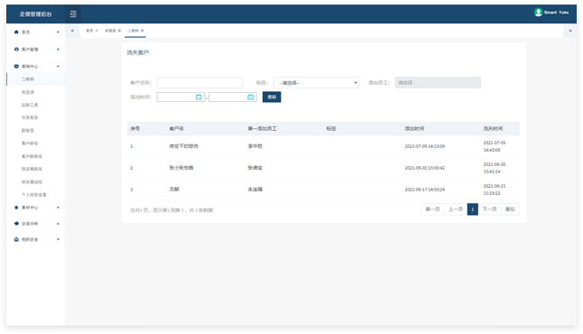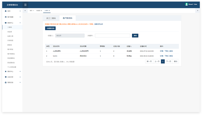 后台可查询统计所有的客户和客户群,并对流失用户进行记录。