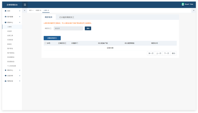 离职继承,即员工离职后客户和客户群转给其他员工,保护企业的数据资产。