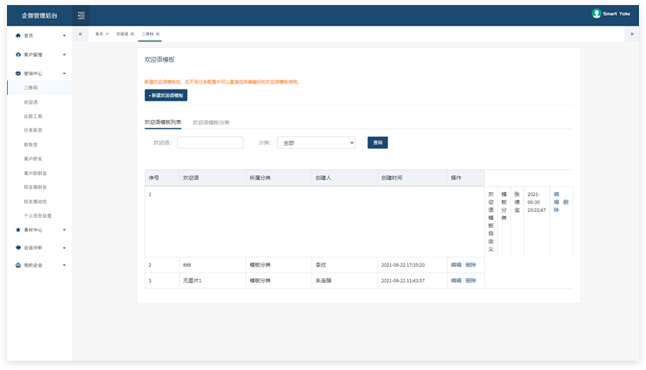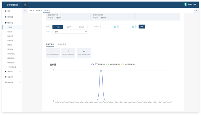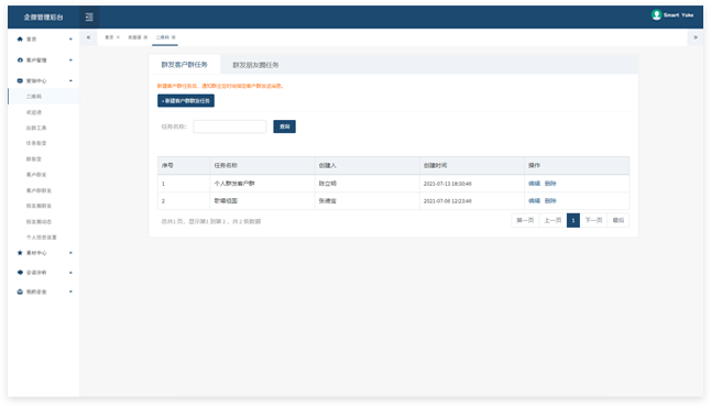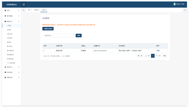 提供客户标签、行为和意向的分析,支持各种消息的群发和任务统计